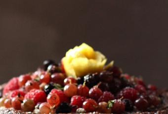 Whole-Wheat Chocolate Zucchini Layer Cake with Gooseberries