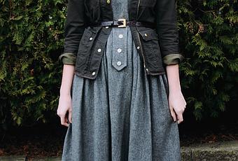 Which is when it came to me: What if I took the wool dress, and popped the longer floral midi underneath it for a pop of unexpected pattern. Then to fight off that Chicago spring chill, I added a cargo jacket that helped bring out the dark colors in the floral dress, and cinched it with a belt to define the waist.