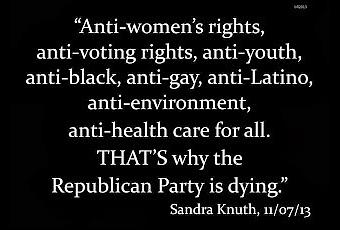 The Republican Party would like to think their recent failures are due to either a failure to properly communicate their values & beliefs or to changing demographics. Neither is really true, because both could be easily addressed. The truth is that no party can survive in a diverse country like the United States with a policy that is aimed at pleasing and addressing only one group -- older white men. Diversity is not something that can be opposed any longer in this country, but is a necessity for any party wanting to remain politically strong and viable.