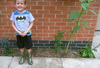 You may remember over the last couple of months Little Mr A has been busy in the garden, first planting sunflowers then sowing some flower seeds. Well over the past few weeks he has been watering them and watching them grow and we thought it was time for an update…