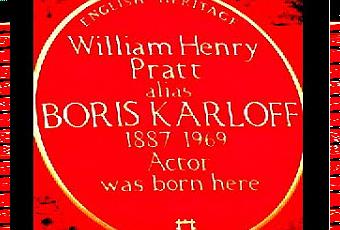 Okay, we admit it. This Blue Plaque isn’t really dedicated to the trio of horrors listed above… but it does commemorate a genuine London movie legend. William Henry Pratt (born in Camberwell, raised in Enfield) left England in 1909 for North America where, under the stage name of Boris Karloff, he embarked upon a life on the stage. Supplementing his initially sporadic acting career with periods of manual labour, it was not until 1931 and his iconic portrayal of The Monster in James Whale’s inaugural “talkie” version of Frankenstein that he became a star. In addition to his famous horror roles – as The Mummy and in The Body Snatcher – Karloff enjoyed a long and varied stage career, starring in the works of Jean Annouilh, J.M Barrie and J.B Priestly on Broadway. His ghost is said to haunt Hollywood & Vine.