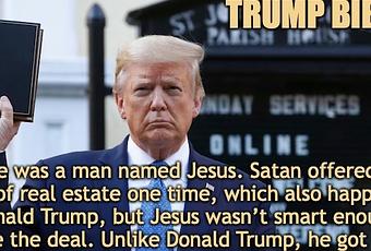 I recently got a peek inside, and some things seemed a little different. You would think that a book in which all the parts about loving your neighbor as yourself had been removed and all the “not’s” omitted from the Ten Commandments would be cheaper than a regular Bible, but that shows what I know. Here are just a few classic stories in their improved Trump Bible retelling!