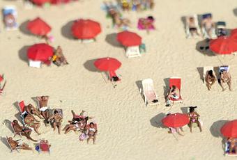 Recently discovered on Vimeo: The City of Samba, an eye-popping video produced during Rio de Janeiro's Carnaval in 2011. Using Nikon D3s camera bodies, a modified enlarger, and large format lenses on bellows, collaborators Keith Loutit and Jarbas Agnelli captured the sprawling city as it never appears to the naked eye—as a tiny city and beach populated by tiny people, all at a dollhouse scale, moving like tiny wind-up toys. It's the magic of the tilt-shift effect, which simulates a miniature scene using an extremely shallow depth of field. Check out the video, and please share your favorite examples of tilt-shift videos or photography with us in the comments section.
