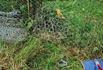 But …. I was walking about the gardens the other day, notebook in hand, making plans. I like making plans. “Plans maketh the man” as the saying (my saying) has it. Plans for plants to be moved and plans for plants to be split, plans for plants to be bought and plans for world conquest and dominion, when I came across proof (incontrovertible proof) of rabbits in the garden. Sure enough, when I hopped over into Margaret’s field and carried out an inspection, I found several holes in the netting.