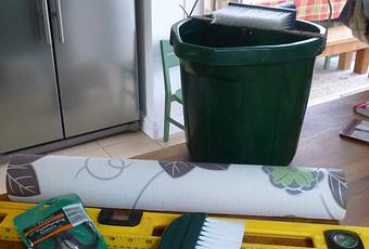 Yesterday's post about my Perfect Life interrupted the flow a bit but I did get on with the papering when I said I would. I dug out my wallpapering accessories, they may look new but they have been in action in three different houses and are my tried and trusted decorating aids, everything I need along with a damp cloth and my well used paste table.