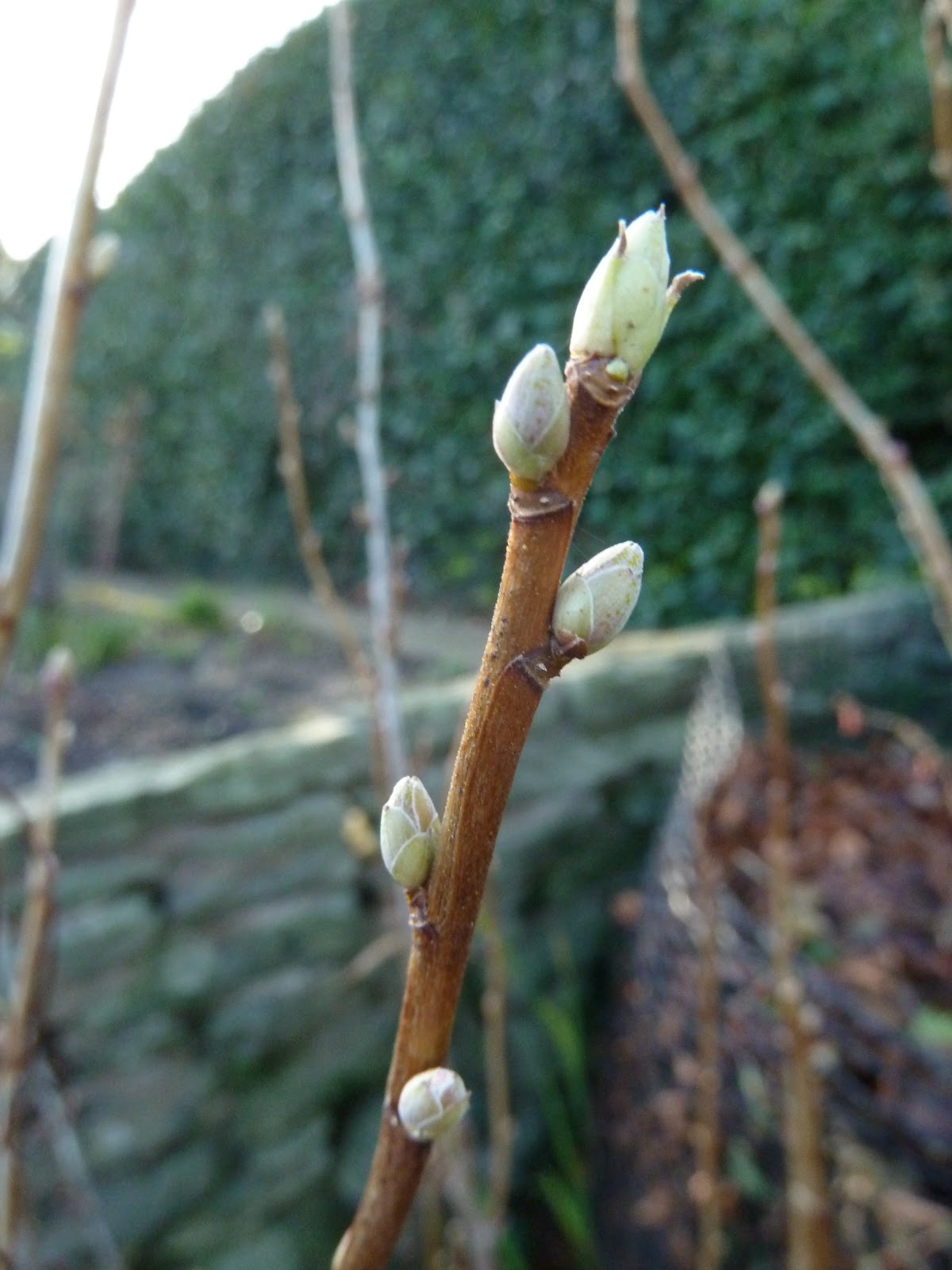 New buds are forming on the Blackcurrant bush, had quite a good first harvest from them last year.There it is below...sunshine!