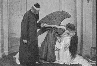 And you will also remember from this post, there was a fascination to recreate Victorian paintings in photos at around the turn of the century, as in the 1894 article about whether a photo could be as effective as the painting it was based on. I also knew this came out of a tradition of tableaux vivants which were from the medieval period but very popular in the 19th century and featured people recreating a scene or painting in a static manner. The difference between this and poses plastiques is very little but in the latter you are more likely to be a woman with her boobs out. Moving on.