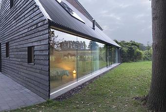 Image courtesy of Jeroen Musch .Not long after Barend Koolhaas left OMA, his uncle Rem Koolhaas's architecture firm, to open his own practice, a relative asked him to design a family weekend retreat in the quaint Dutch town of Almen. The budget was small—roughly $150,000—and Koolhaas had to figure out a way to keep out views of a neighboring house. The architect's ingenious solution was to design the floor plan as a right angled triangle that opens up on its long side to private garden views.