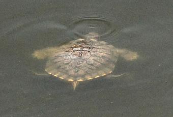 A tortoise or perhaps a Turtle pictured at Kairavini thirukulam of Sri Parthasarathi Perumal Thiruvallikkeni.