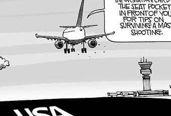 A Warning On Entering The U.S.Political Cartoon is by Mike Smith in the Las Vegas Sun.