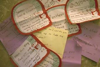 When I studied the Bible before the Plan, I'd just pick a book and read it through. I stopped reading for the day when I felt full up and unable to absorb any more. Sometimes that occurred after half a chapter. Other times I read two or three chapters before I felt unable to spiritually absorb any more. Usually while reading, my mind raced with ideas and questions and I eagerly looked up parallel verses, the Greek words, or other verses the Spirit brought to mind. I have a small Post-it notes next to my table and I jotted down ideas and thoughts to pursue later. Here is the pile of Post-its I haven't yet pursued, written before I started the plan:
