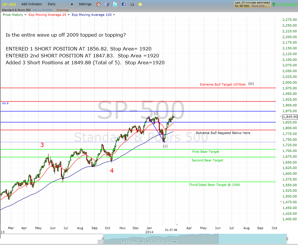 I have added 3 more short positions and set my stop at SPX 1920 (the stop is manual and I will post if I take the stop out). Here is the chart: