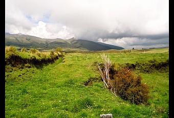 As our day wore on, the clouds dissipated some, giving us a better look at the surrounding countryside. What we saw were rolling hills covered in incredibly fertile grasslands, which were perfect for farming and grazing of livestock. Many of the fields we passed had horses or cattle in them, and small homesteads dotted the landscapes. Occasionally, one of the farmers could be spotted going about the days chores. Any that past close enough to see our wandering trio were quick to greet us with a friendly "hola" or "buenos días." The warm and inviting people of Ecuador are found high in the Andes as well it seems.