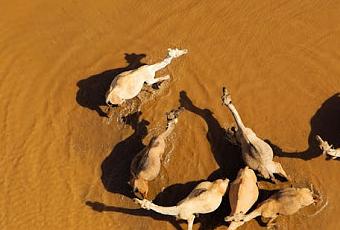 Aerial view of camels being watered in the Chalbi Desert, KenyaPicture: Martin Harvey / Barcroft Media
