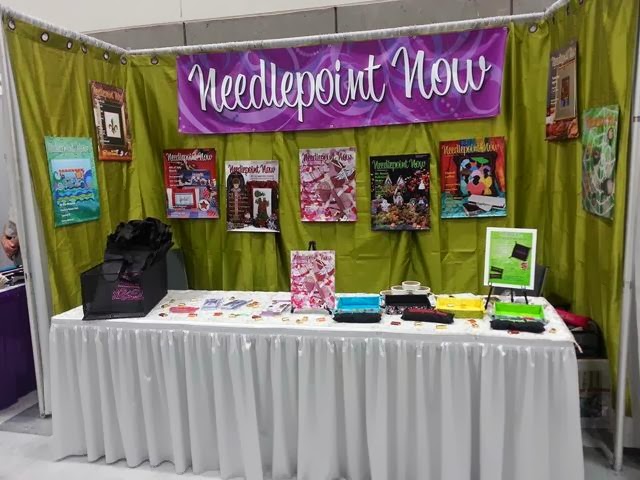 I was very fortunate to be there as a guest of my frequent publisher, Needlepoint Now magazine. Here's a look at the very colorful booth, photo courtesy of Vickie again: