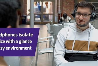 To use the system, a person wearing off-the-shelf headphones fitted with microphones taps a button while directing their head at someone talking. The sound waves from that speaker’s voice then should reach the microphones on both sides of the headset simultaneously; there’s a 16-degree margin of error. The headphones send that signal to an on-board embedded computer, where the team’s machine learning software learns the desired speaker’s vocal patterns. The system latches onto that speaker’s voice and continues to play it back to the listener, even as the pair moves around. The system’s ability to focus on the enrolled voice improves as the speaker keeps talking, giving the system more training data.