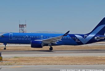 A Breeze Airbus A220-300 touches down at Louis Armstrong New Orleans International Airport. Breeze Airways began service in May 2021 and specializes in nonstop flights to underserved airports. First flown in 2013, the A220 is a narrow-body airliner originally designed by Bombardier Aerospace and now marketed by Airbus. Breeze operates 35 of these A220s with 55 more on order. The checkmark logo was added to symbolize an ascending bird (or an object taking flight).