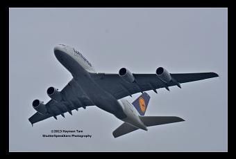 After cleaning itself up, this Lufthansa A380 climbs for altitude as it begins its long flight to Frankfurt from San Francisco. It is the world’s largest passenger airliner. Initially named Airbus A3XX, the A380 made its first flight in April 2005 and began commercial service in October 2007.