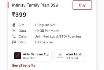 Jio and Airtel don’t provide you with an additional SIM card for family members for Rs 399 plan but if you go for the higher plans it is offered.