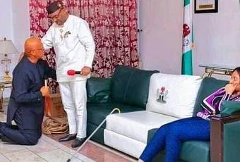The second Akwa Ibom Commissioner for Lands, Pastor Umo Eno knelt down as Governor Emmanuel Udom of Akaw Ibom state anointed him as the subsequent governor of the state has emerged.