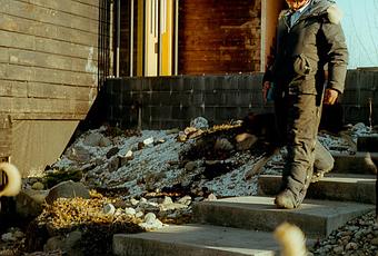 Perched on top of a hill, the House for a Musher by Mayer Sattler-Smith is accessed by a long staircase that runs up to the exterior courtyard. The dogs, naturally, take their own route. Photo by: Kamil Bialous