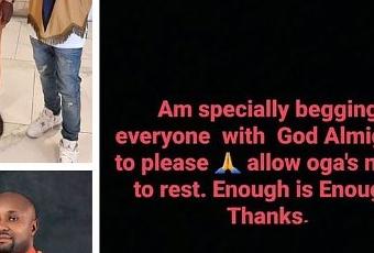 He wrote; "Am specially begging everyone with God Almighty to please allow Oga's name to rest. Enough is Enough. Thanks."