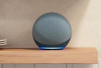 The Echo 4 is available in three colors: Charcoal, Glacier White and Twilight Blue. It has an LED ring around the base of the speaker and a volume up button, volume down button, action button and stop button microphone on the top of the device.