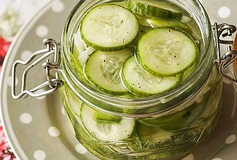 SAME DAY SUMMER PICKLES -A super simple meal accompaniment for the summer which makes great use of the fresh summer produce. There are 4 versions, each pickle serving two. Heart healthy and delicious!