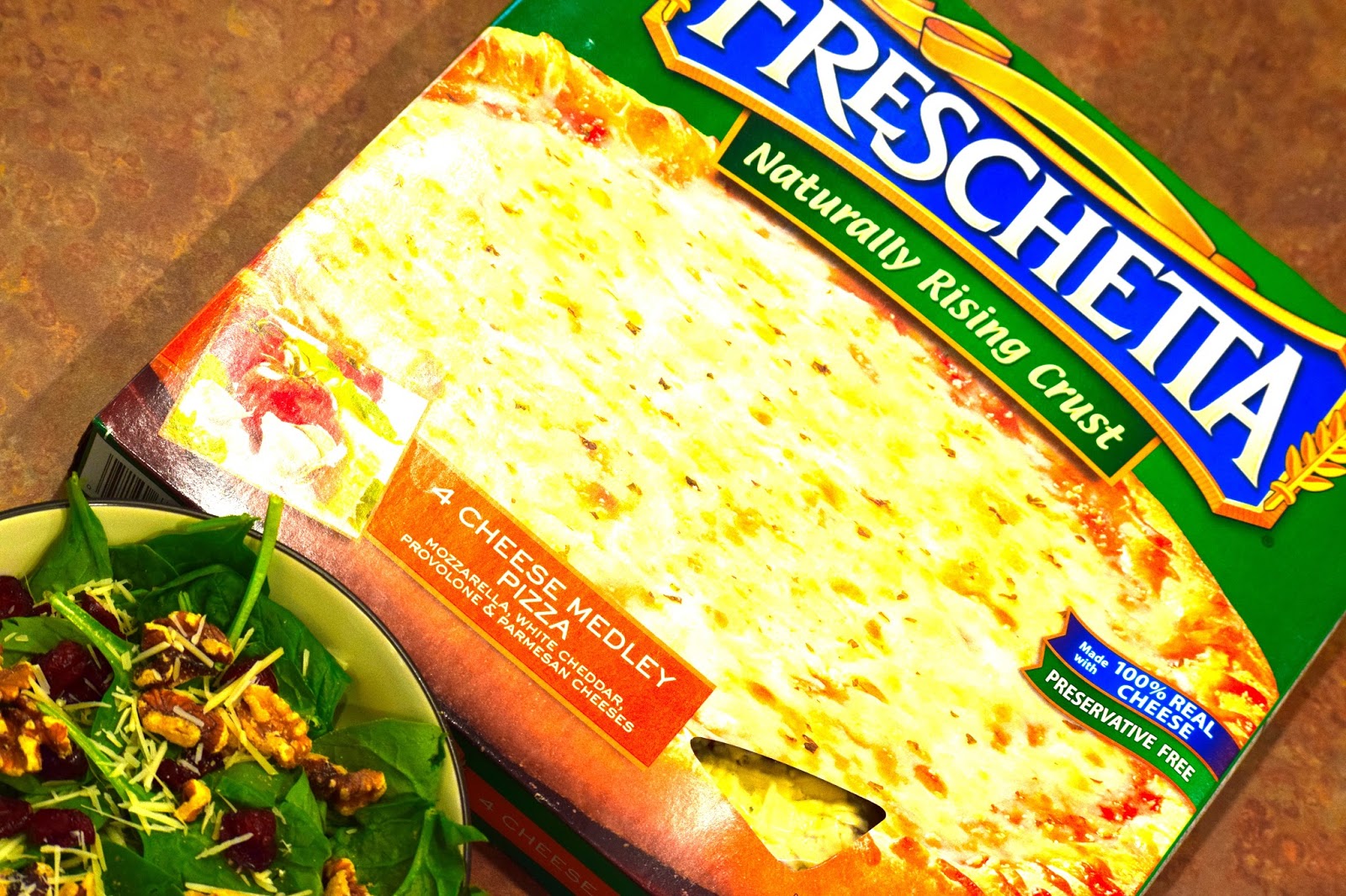 Frozen pizza's like Freschetta's are always a go to for my family of three and my toddler can't get enough of the ooey gooey cheese and crust. I love that they use 3 whole grains that goes directly into their crust, and as my toddler will tell you, the crust is 'the best part'. I also have a weak spot for their Brick Oven pizza because that brick oven tastes as if it were cooking in that hot oven for hours! With my pizza, I try to add a bit of greens to it and came up with this delicious spinach salad.