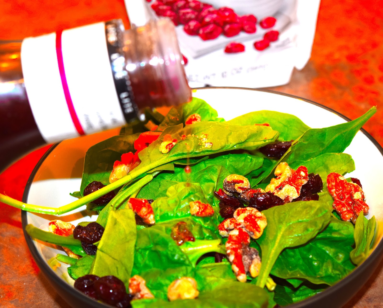 3. Pour Raspberry Walnut Vinaigrette on top of your salad