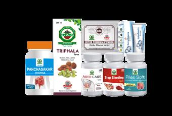It contains : Detox premium powder, Arshcare tabl, Triphala syrup, Pile soft tab, Stop bleeding tablet, Panchskar tab and Shatadhaut ghrutam