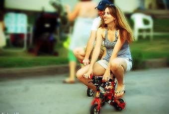 Neighborhood Circus and Block Party: little Indiana and Hubby Jeremy Nunemaker Test the Mini Bikes