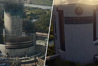 What would become one of the headquarters of SHIELD and then HYDRA was still under construction in 1989, when the prologue to took place.Ant-Man.