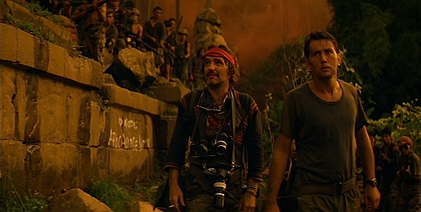 These additions harm the pacing, but the plantation scene derails the entire film. Willard's men encounter an enclave of French expatriates in the jungle, twenty years after Dien Bien Phu. They invite the Americans for dinner, then endlessly debate colonialism and Cold War politics before Willard slips away to bed a young Frenchwoman. Nearly twenty minutes long and excruciatingly didactic, this awful, deadening sequence destroys the pace, ruins the tone and makes the thematic texture painfully literal.