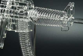 What you’re looking at is not a gun, but a glass smoking pipe. This beauty is made of lampworked borosilicate glass and is 34″ long x 16″ high x 7″ deep. While you’re never meant to point a gun at anyone, I think in this case you can make an exception.