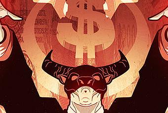 Featuring a standard cover by fan favorite artist Juan Doe– plus two limited, special edition shelf covers featuring perforated, fully detachable One Percent bull and bear masks by legendary artist and designer Rian Hughes – get rich or die trying this November as Ray Fawkes and Joe Eismafoist a brand new breed of villain to the top of the corporate ladder in ARCHER & ARMSTRONG: THE ONE PERCENT #1! (That will be $3.99, please.)