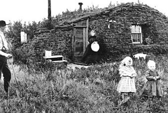When settlers first made their homes on the prairies of North America, the sod house was the prevalent form of architecture because wood wasn’t readily available. Settlers cut patches of sod into long rectangles and layered them together to form small huts. Photo via schmidt-thesman.blogspot.com