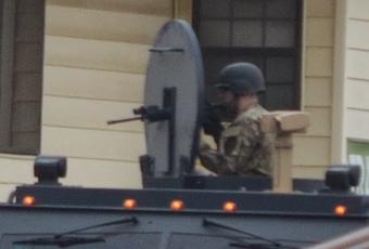 A standoff continues as of 3pm at the Traveler’s Inn on University Parkway in Winston-Salem, NC. The WSPD has the area surrounded, including a rooftop sniper and armored personnel vehicle, and are in contact with the suspect.