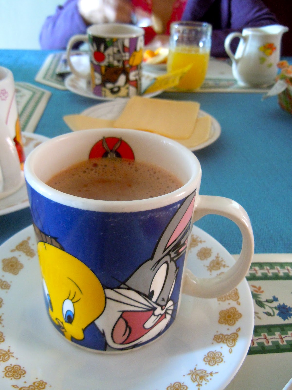Next, we each helped ourselves to a piece of bread that had been purchased that morning from the panaderia a few blocks away. I really love how this is the custom in so many foreign countries. And finally, chocolate and cheese.