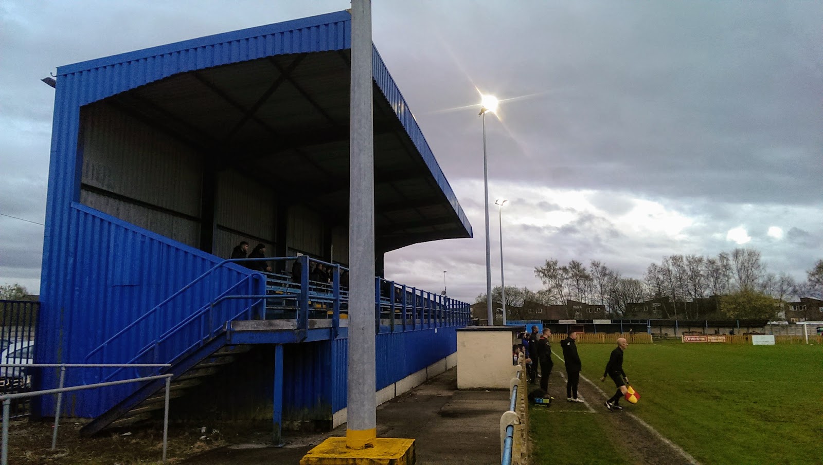 Atherton Town have three teams in the Manchester League with the senior side in the First Division, the reserves in the Third Division and the Academy side in the Fourth. The club also has 20 junior teams covering all age groups in the Bolton and Bury League.Butler Park is found behind the Howe Bridge Sports Centre. Your greeted by some rather fetching gates and a welcoming clubhouse at the entrance. The ground is fully enclosed with a railed off pitch, with dugouts at one side. There's a small shelter with individual seats and a bench inside which I reckon has a full capacity of 9.
