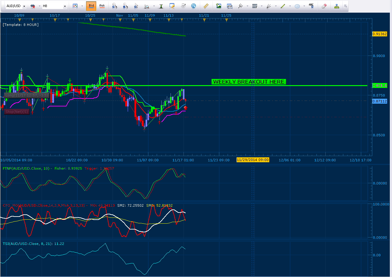 This current post is an add on to the Dollar Weakness. I am tacking on an AUDUSD long here. I am front running the dollar weakness a bit but last week went so well in the NZDUSD and EURUSD that I am going to add the AUDUSD long. Here is the chart with the stop level: