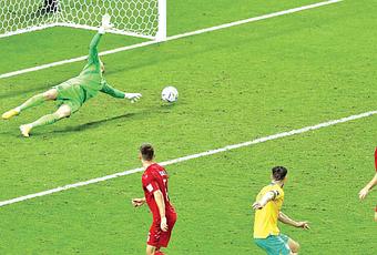The Danes, needing victory to progress, dominated possession but were caught out on the break when Australia scored the winner on the hour mark. Denmark lost the ball in the Australian box and Mathew Leckie finished a brilliant counterattack with a low shot past Kasper Schmeichel.