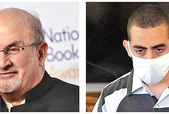 Author Salman Rushdie (L) and his attacker Hadi Matar