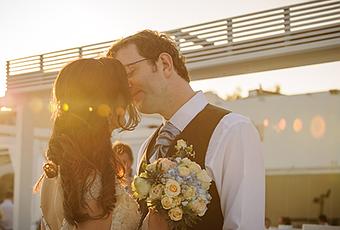 The lovely couple that we are presenting today chose to host their love in the beautiful island of Cyprus. The wedding ceremony took place under a beautiful flower arch by the sea since the couple dreamed a seaside wedding. Their decoration was minimalistic with beautiful flower arrangements by Anthopnoi and the colours that dominated were their favorite blue combined with the vintage white and peach. Scroll on to see some of their favorite moments!