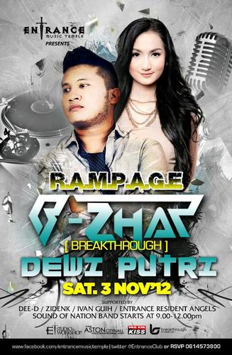 DJ B-ZHAR at Entrance – Medan 03.11.2012 Date : Saturday, Nov 03rd 2012. Venue : Entrance Club – Medan. Last Saturday night DJ B-zhar from (Breakthrough) was spinning at Entrance Club – Medan. DJ B-zhar was known for his Mashup style, which is a combination Genre R&B HOUSE AND MASHUP MIX MASH WITH ELECTRO elements. the atmosphere that night was full of a great party vibe. The partygoers were come early and enjoy the opening music. Many of them were in great expectations to enjoy the R&B Mashup music from him. DJ B-zhar was scheduled to perform around 1 AM. At 1 AM he started playing. He took control the crowd from the DJ booth with a nice LIVE P.A combination setlist from the latest R&B music anthem with singer DEWI PUTRI Overall, it was a great party filled with lovely vibe, beautiful people, amazing music, and an obvious fun night. Don’t forget Follow to check DJ B-zhar gigs at @B_zhar