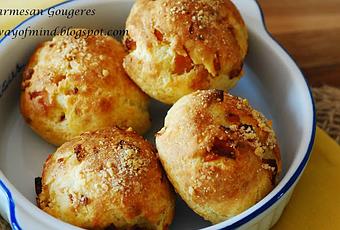 五月,好多朋友将离开卡达尔的月份,说不伤感是假的。 夏炎的空气有时闷热得让人抓慌,菜埔里的菜啊,水果啊,都死轿轿了!日子回到原来的厨房,关在有空调的屋里,心是平静的。我爱我的厨房!那天看到 Fine Cooking 的 Bacon Parmesan Gougeres 就动工了,好一道不用酵母的面包。成品是偏咸带奶酪香有咬劲的软面包,实合加入孩子的午餐合里,当然也是很好的早餐。除了好吃之外,这面包加分在。。。速战速决!