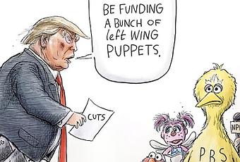 Bad Puppet Tries To Defund Good PuppetsPolitical Cartoon is by Adam Zyglis in The Buffalo News.