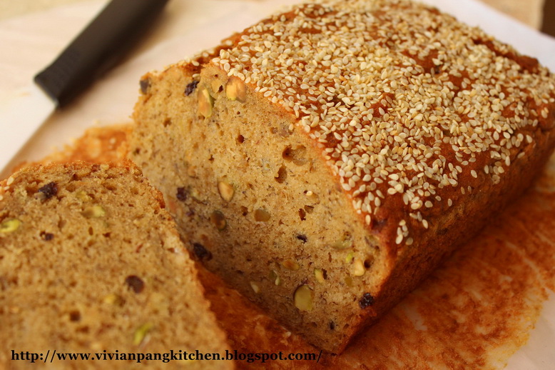 I love to bake with banana. Therefore I very eager to try out this banana nut bread which happend to be this time Bake Along recipe- Wiliams Sonoma's Banana Nut Bread. As the name stated it is more on bread texture, firm but yet moist with full of banana flavor. I love to have it along with some spread on top...peanut butter and jam.