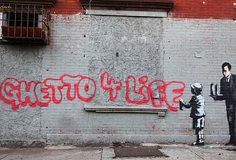The latest stencil piece from Banksy went up on the site this afternoon, a young boy with his spray can ‘butler’ – this one’s said to be located in the South Bronx.