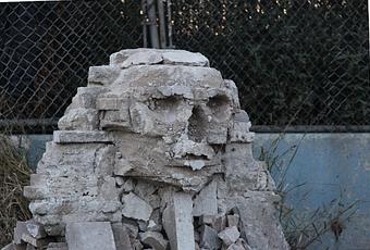 No turn unstoned. A 1/36 scale replica of the great Sphinx of Giza made from smashed cinderblocks.You’re advised not to drink the replica Arab spring water.